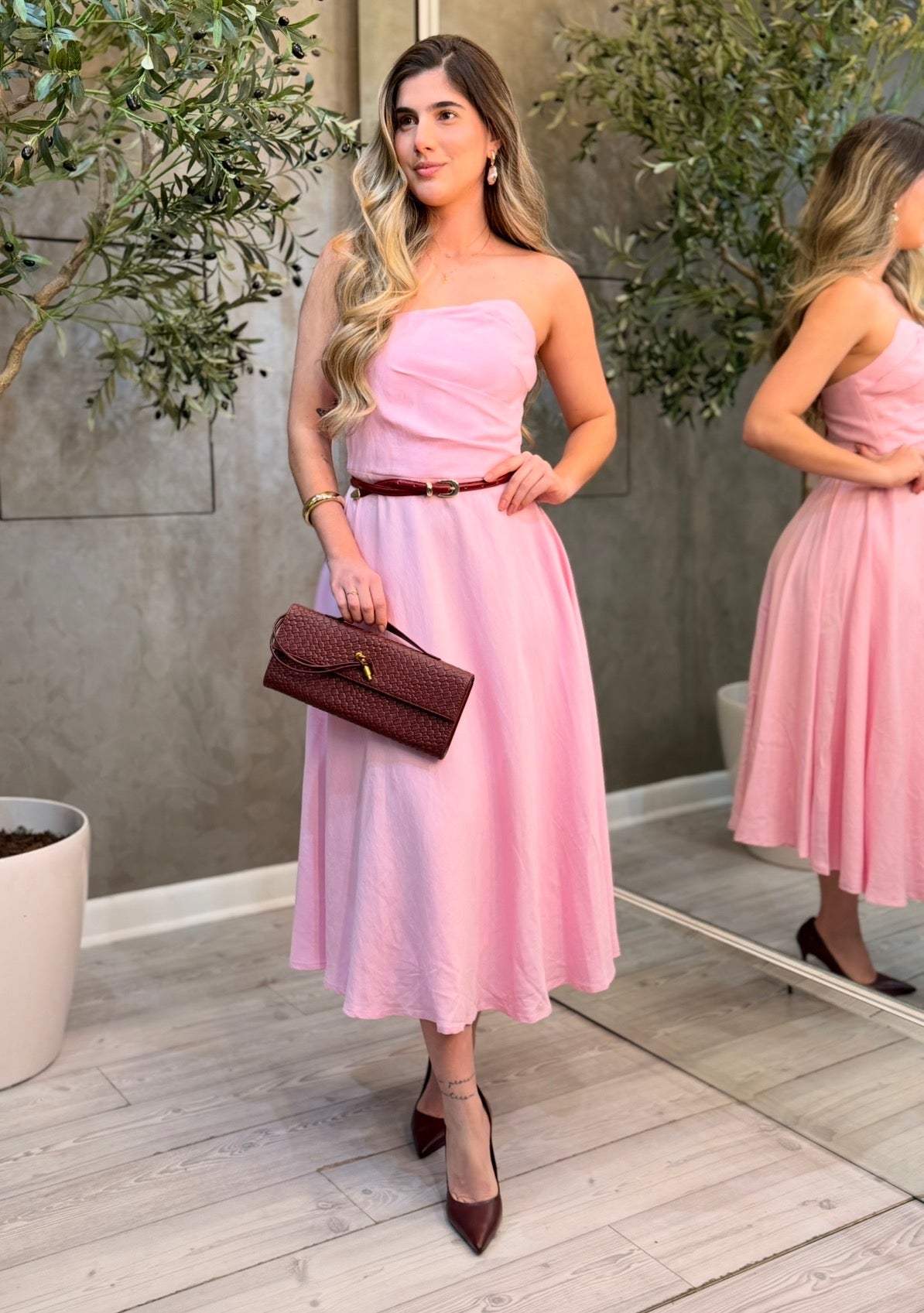 Embrace effortless elegance with this strapless viscose dress, designed with an asymmetrical bodice that adds a modern touch to a timeless silhouette. The A-line skirt flows softly from the waist, creating graceful movement with each step while enhancing comfort and femininity. Crafted in lightweight viscose, this dress is perfect for warm days, beachside dinners, or special daytime occasions, ensuring you look chic and feel comfortable all day.