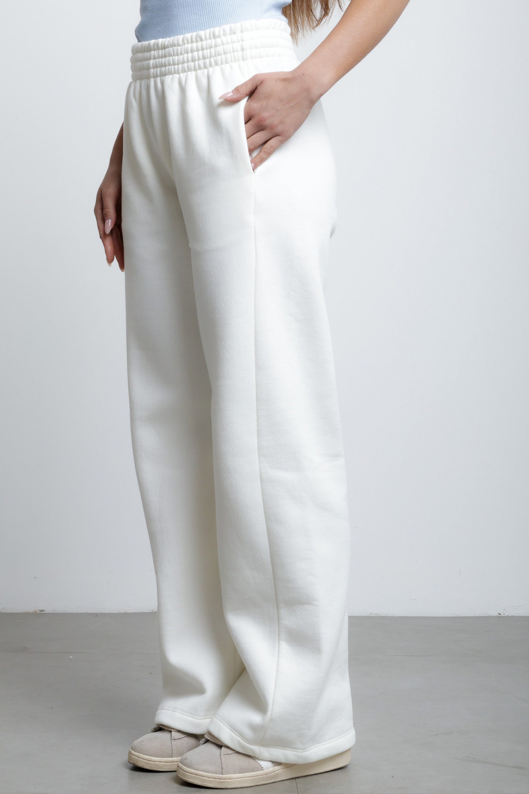This cozy two-piece sweat set features a relaxed straight fit with a comfortable mid-rise waist and elastic waistband for a perfect fit. Crafted from soft fleece-lined sweatshirt fabric, it provides warmth and comfort for everyday wear. Ideal for lounging, travel, or casual outings.