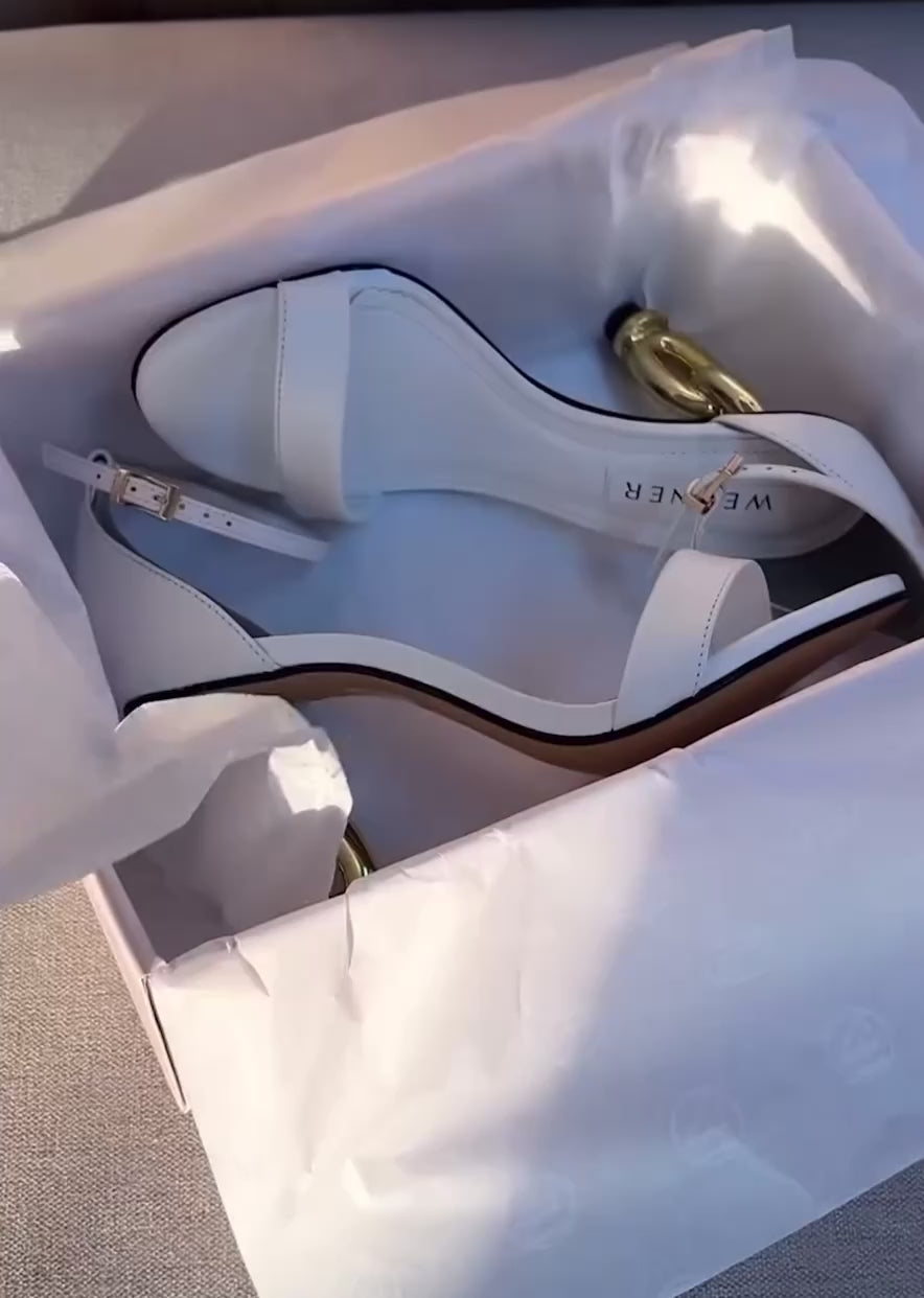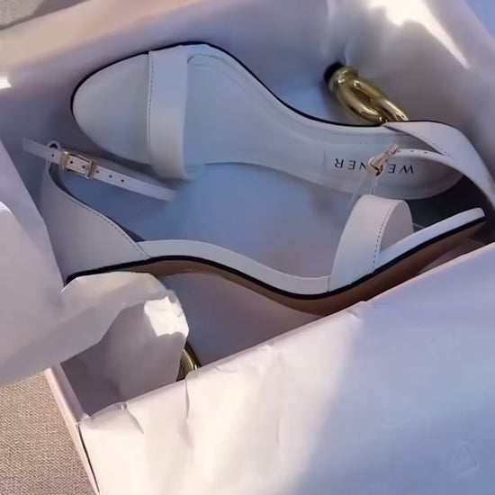 Step into elegance with these statement sandals. Designed with a minimalist white strap and adjustable ankle closure, they stand out for their sculptural gold chain-link heel a bold touch of glamour for any outfit. Perfect for evening events, parties, or elevating a chic everyday look.