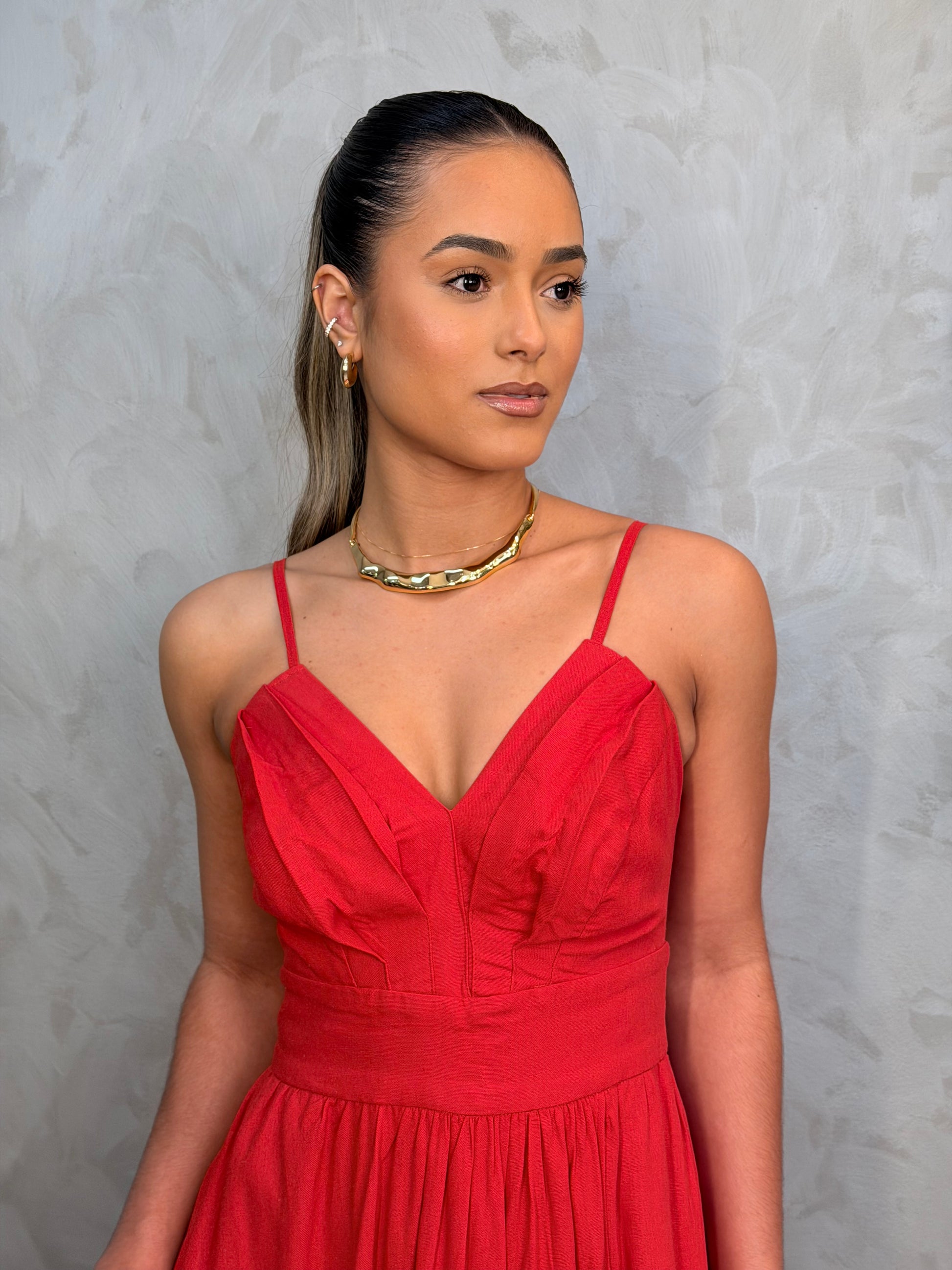 An ankle-length dress crafted entirely from linen, featuring a fluid, airy skirt that moves gracefully. The bodice is beautifully gathered for a flattering, textured look, complemented by adjustable shoulder straps for a perfect fit. A timeless and elegant piece designed for comfort and effortless style.