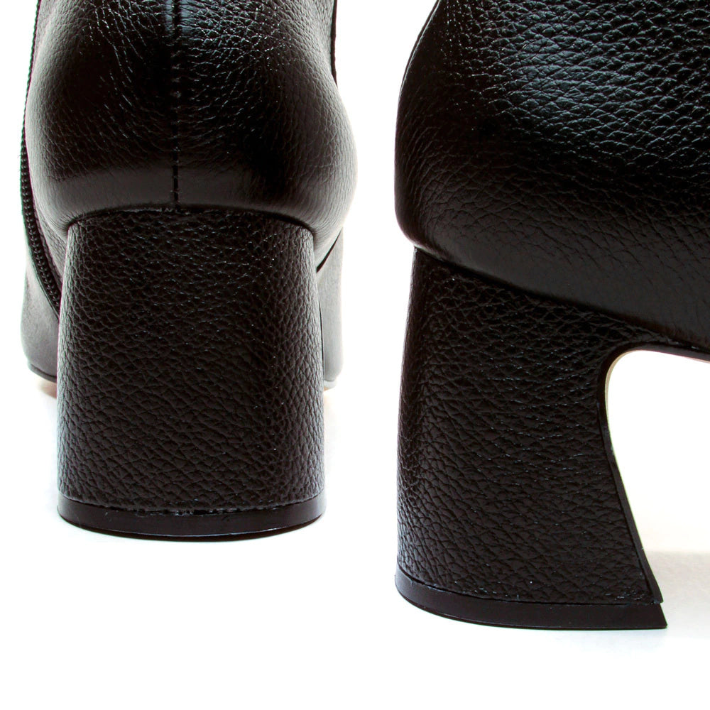 An ankle boot that exudes elegance in its simplest and most sophisticated form. Crafted from high-quality leather, its minimalist shape is complemented by a pointed toe that elongates the silhouette and a medium block heel that offers comfort without sacrificing style. A timeless and versatile piece, perfect for adding a refined touch to any outfit.