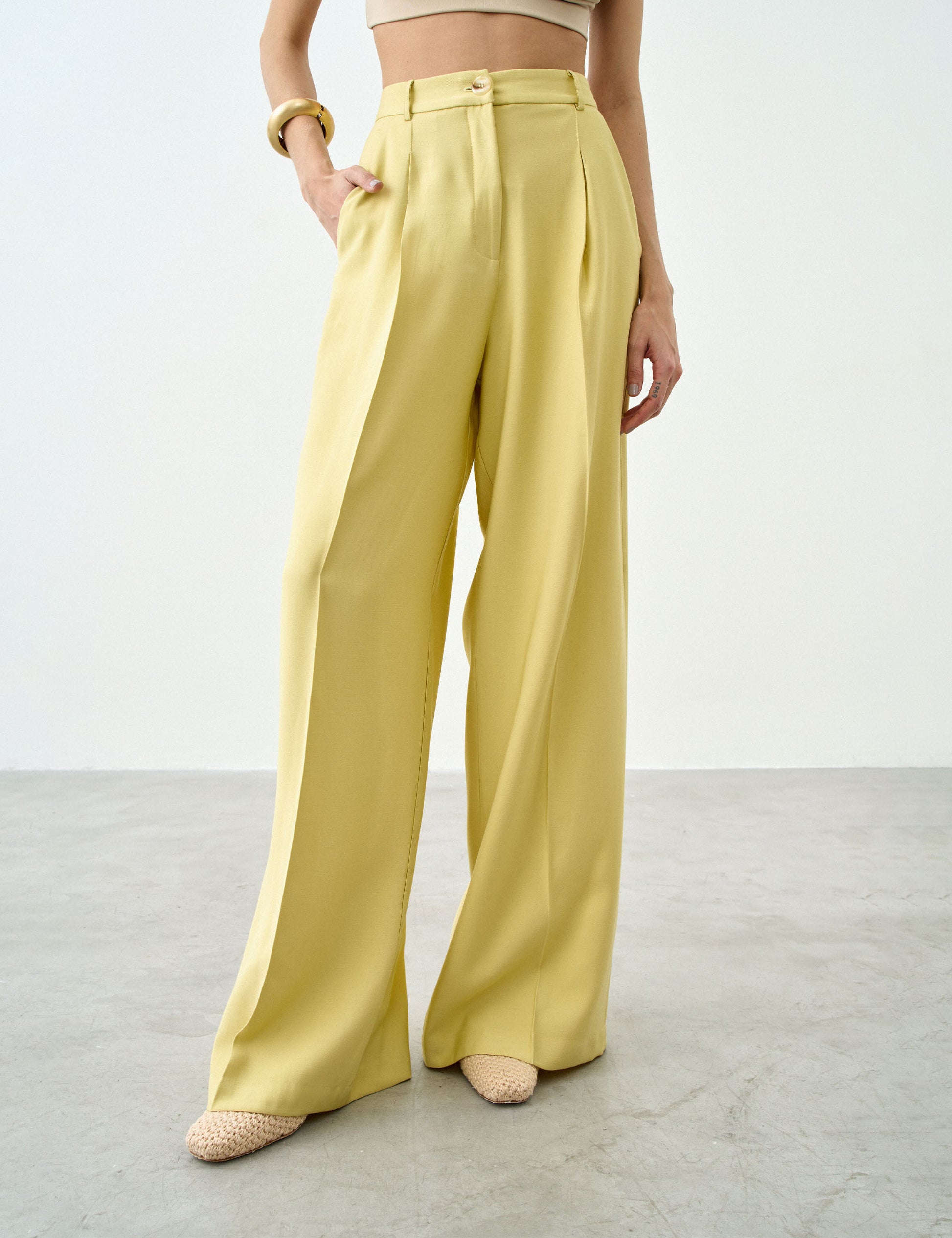 Featuring a wide-leg silhouette and high waist, it subtly enhances the figure while maintaining a refined look. The waistband with belt loops, button and zipper closure, and side slash pockets add everyday practicality. A key detail is the built-in lining in the Off-White version, which prevents transparency without compromising the light, fluid fit of the fabric.